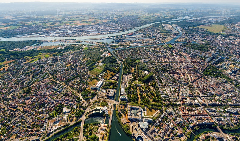 Страсбург, Франция.Панорама города в летний день.Солнечная погода.Вид с воздуха