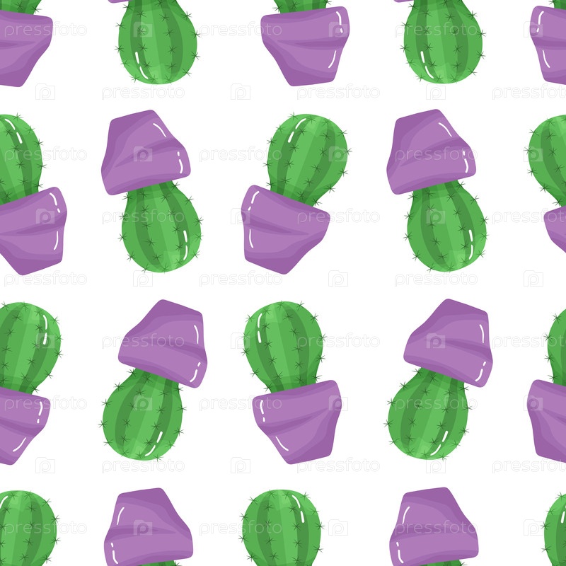 Бесшовный рисунок с мультфильмом комнатных растений в горшке