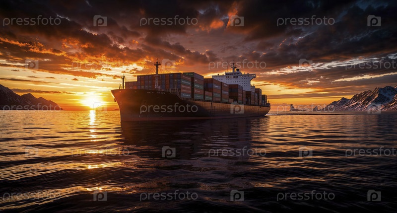 Грузовой корабль на закате солнца