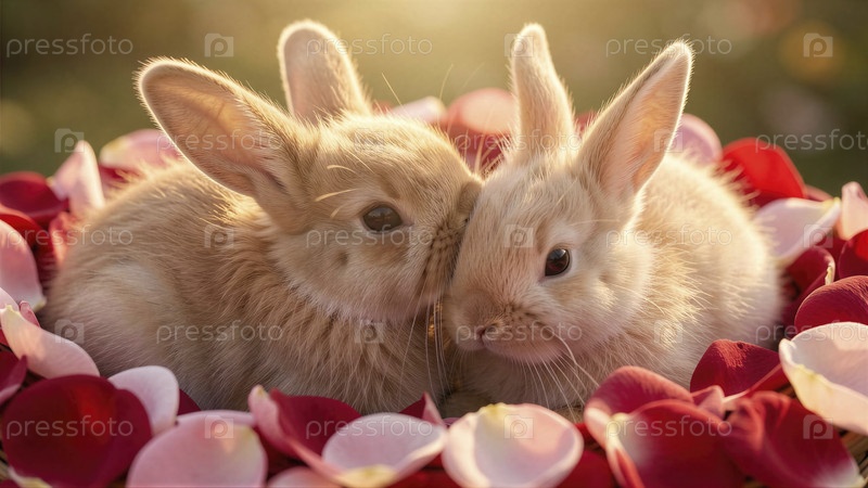 Милые кролики в розовых лепестках для сладкого пасхального приветствия