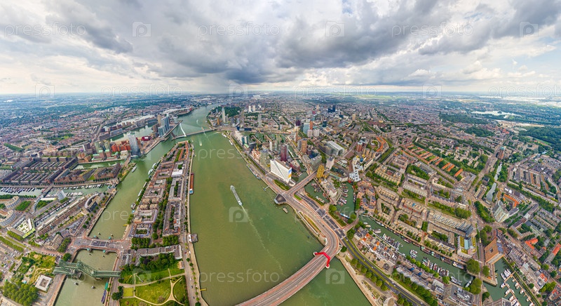 Роттердам, Нидерланды Панорама летнего города в дождливую погоду. Облака. Вид с воздуха