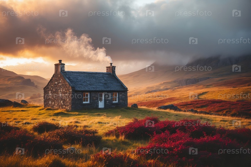 Дом здания ландшафтный фон красные и желтые листья осень-осень осенний лесной парк AI Generative