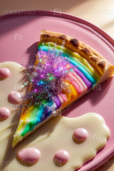 Абстрактная необычная творческая художественная пицца с блеском радужного сыра соус Пищевая фантазия AI Generative