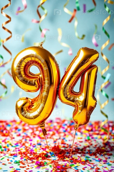Гелий день рождения воздушный шар формы номер девяносто четыре, золотые буквы фигура 94 праздник праздничный фон декор