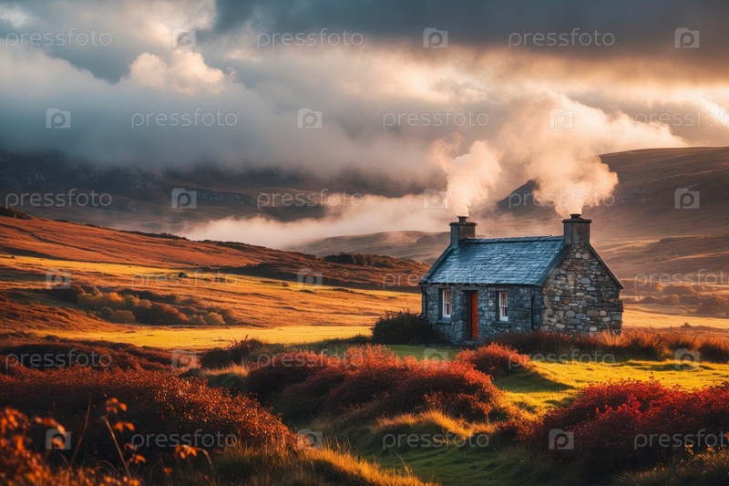 Дом здания ландшафтный фон красные и желтые листья осень-осень осенний лесной парк AI Generative
