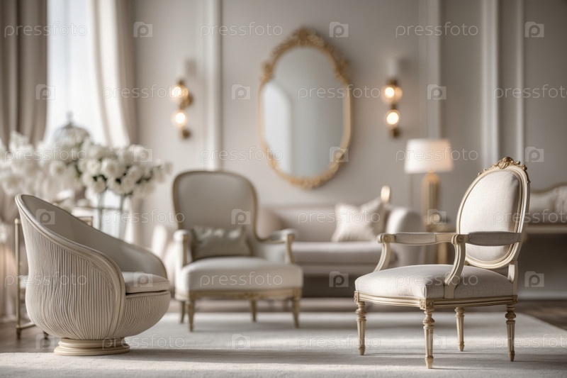 ИИ генеративный современный уютный интерьер гостиной белый светлые цвета мебель комфортный дизайн дома