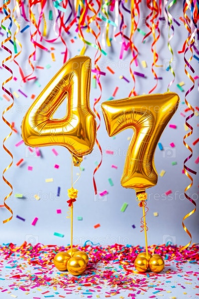 Гелий день рождения воздушный шар номер сорок семь, золотые буквы фигура 47 праздник праздничный фон