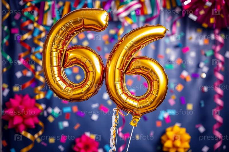 Гелийный баллон номер шестьдесят шестой, фигура золотых букв 66 праздник праздничный фон