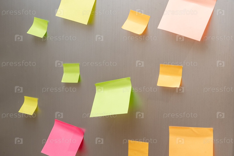 Пустые клейкие наклейки на двери холодильника, бумажная пустая страница с копировальным пространством для текстового макета