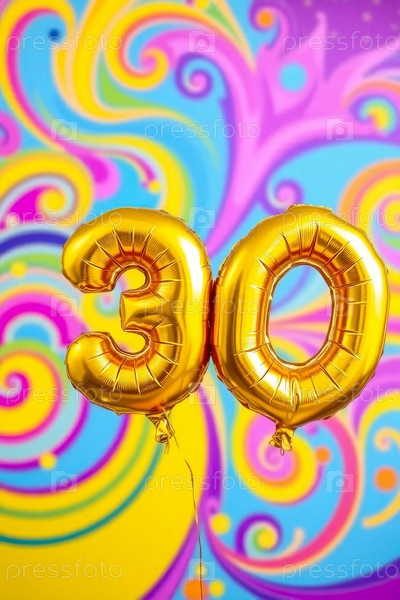 Гелий день рождения воздушный шар формы номер тридцать, золотые буквы фигура 30 праздник праздничный фон