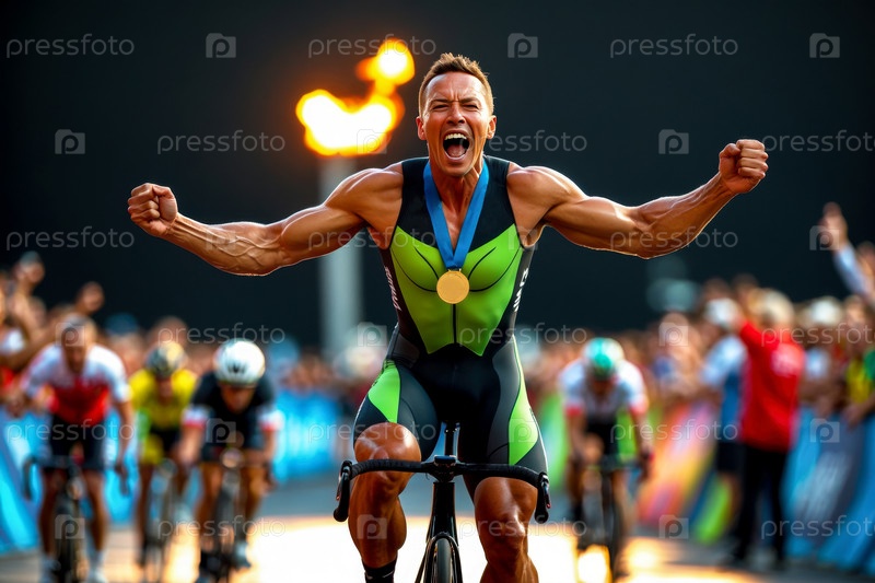 ИИ генеративный мужчина Спортсмен Велосипедист Верховая спорт Велогонка гонки Летние Соревнования