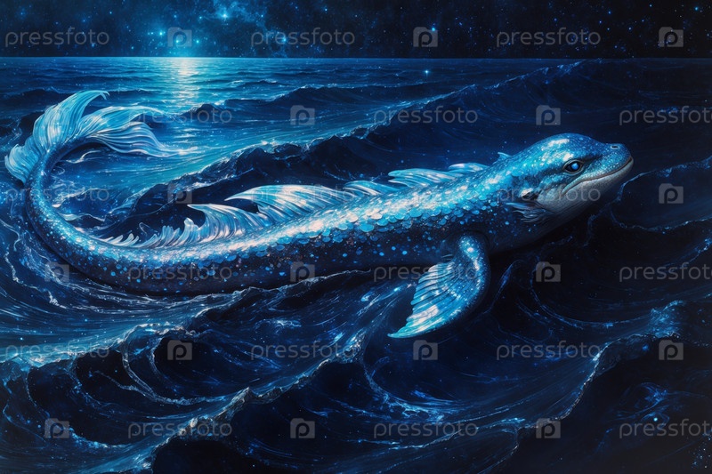 AI Generative Фантастическое мифологическое животное из сказки, неоновое существо, живущее в водоеме