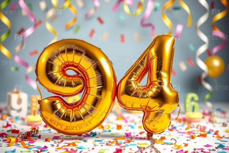 Гелий день рождения воздушный шар формы номер девяносто четыре, золотые буквы фигура 94 праздник праздничный фон декор