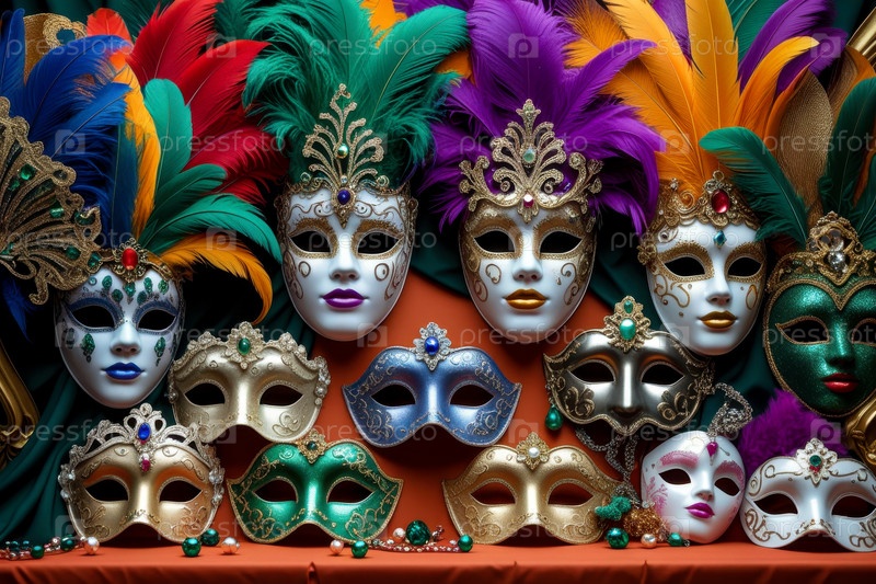 Красочные карнавальные маски, праздничная традиция Марди-Грас Фестиваль парад Фон ИИ генеративный
