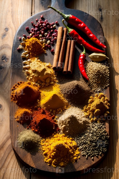 Различные многие ароматические вкусы сухие специи порошковые кучи ассортимент в стеклянных банках миски AI Generative