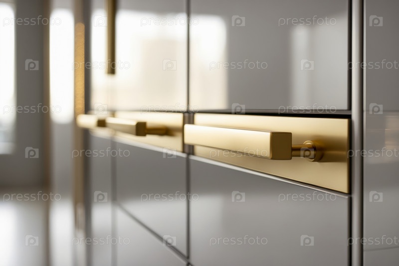 Металлическая ручка Кухонный шкаф Дизайн, мебель Интерьер Детали декора гардероба AI Modern Generative