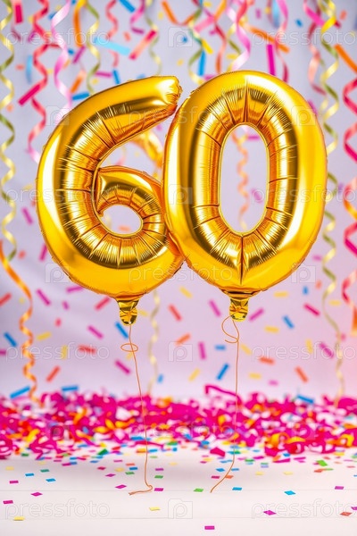 Гелий день рождения воздушный шар формы номер шестьдесят, золотые буквы фигура 60 праздник праздничный фон декор