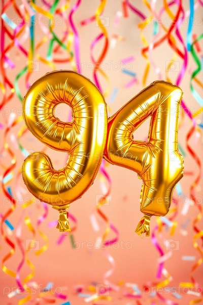 Гелий день рождения воздушный шар формы номер девяносто четыре, золотые буквы фигура 94 праздник праздничный фон декор