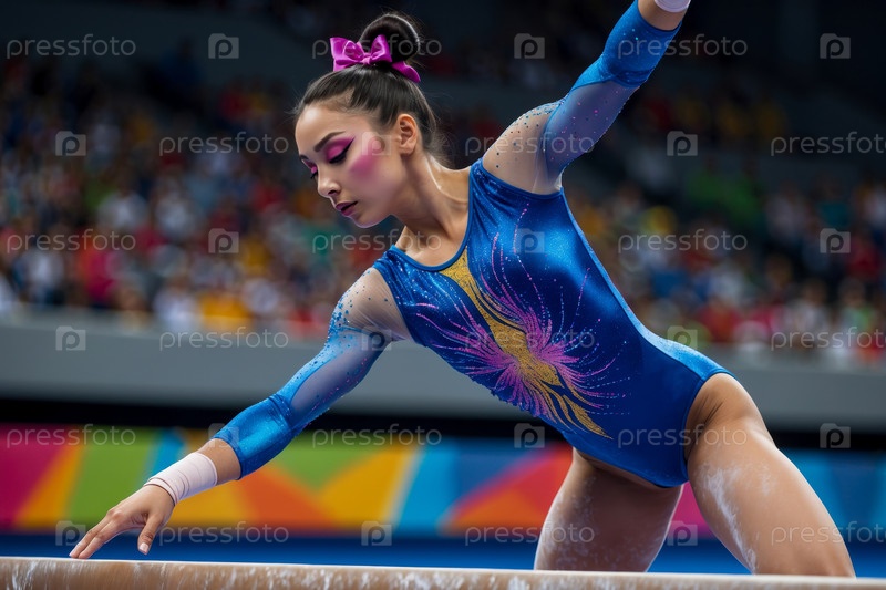 Соревнование по художественной гимнастике, женщина-спортсменка выступает на чемпионате AI Generative