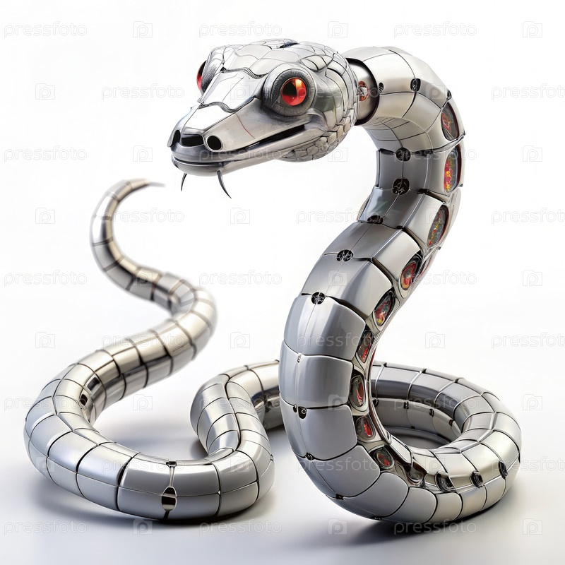Серебряный змей с красными глазами на белом фоне