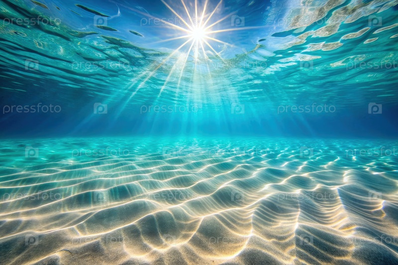 Солнечный песчаный морской дно под кристально чистой водой. генеративная ИИ