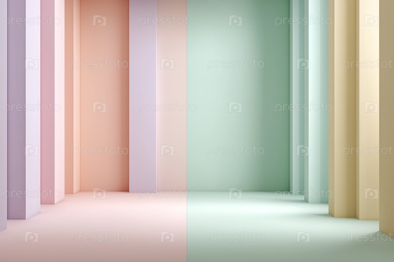 Абстрактный пастельный интерьер с вертикальными колоннами и разделенными цветными стенами