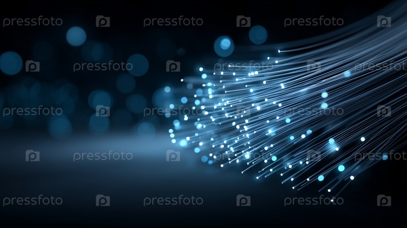 Яркие голубые волоконно-оптические кабели в движении