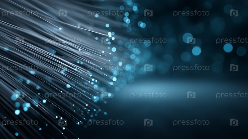 Абстрактные волоконно-оптические нити с светящимися синими огнями