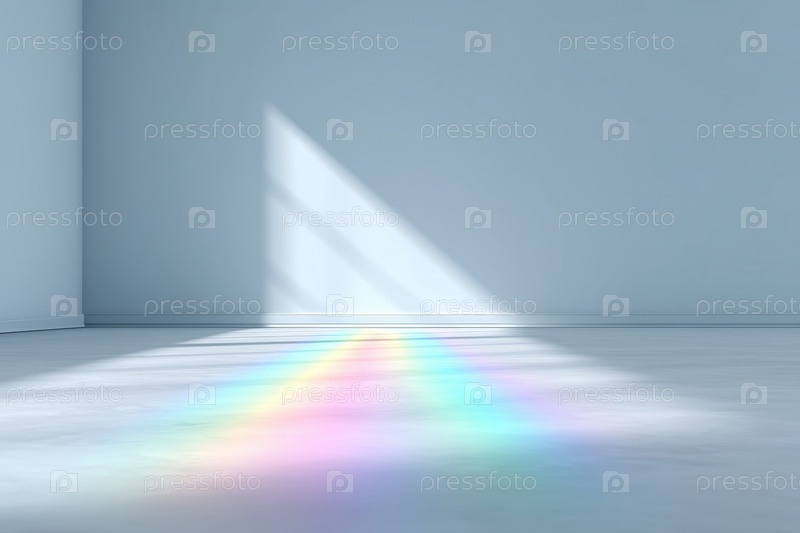 Спектр радужного света на белом полу в пустой минималистической комнате