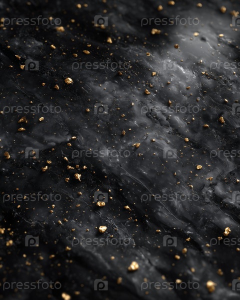 Рассеянные золотые крупицы на темной мраморной поверхности