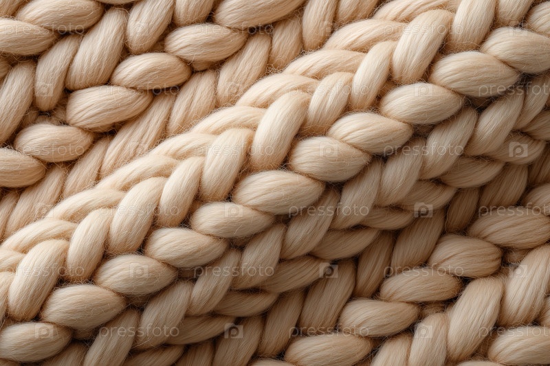 Ближайшее изображение густой бежевой шерсти вязаной текстуры с толстой нитью