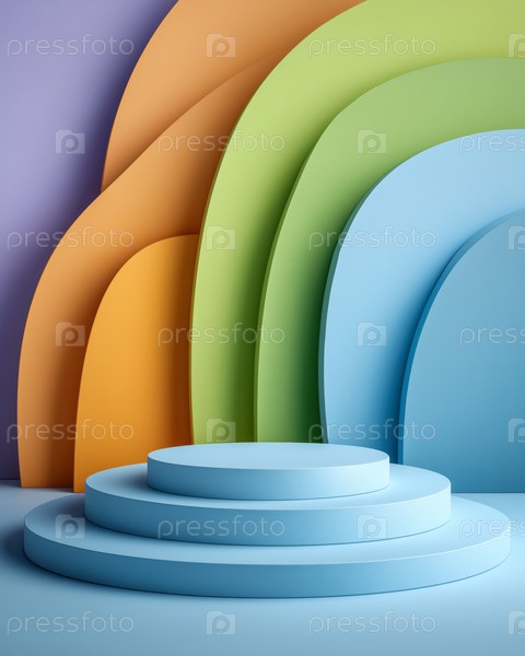 Радужная многоуровневая подиумная площадка на фоне
