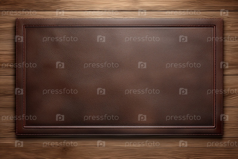 Коричневый кожаный настольный прокладка на деревянной поверхности