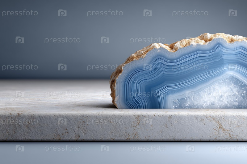Агат Синий Слайс на Каменном Подиуме