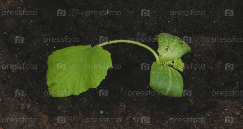 Выросший из почвы тыквенный побег готовит саженцы к весеннему огородничеству