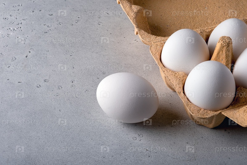 Одно яйцо снаружи картона на серой поверхности