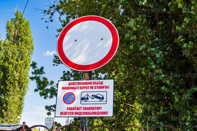 Городской пейзаж. Дорожный знак 3.2 «Движение запрещено». с предупреждающей табличкой. Воронеж