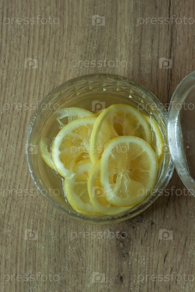 Дольки лимона в вазе вид сверху