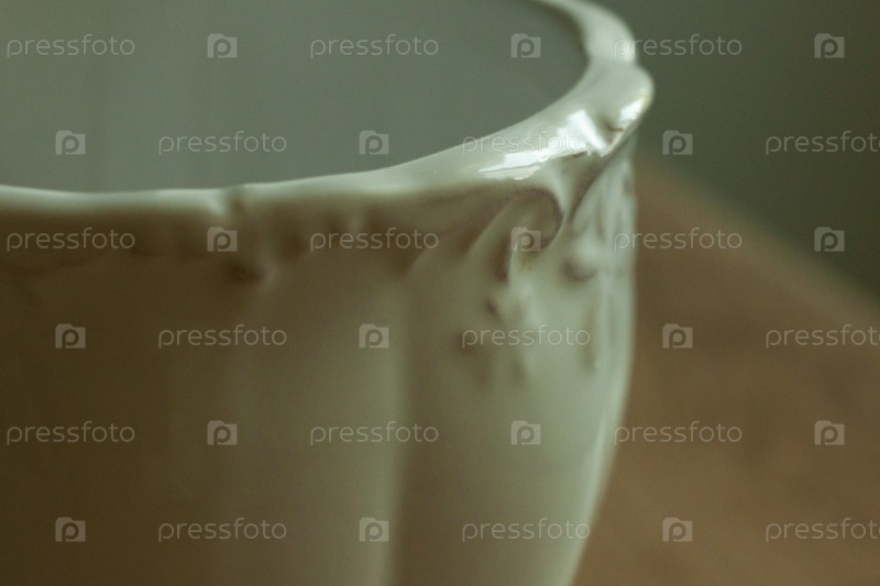Фарфоровая белая чашка крупный план