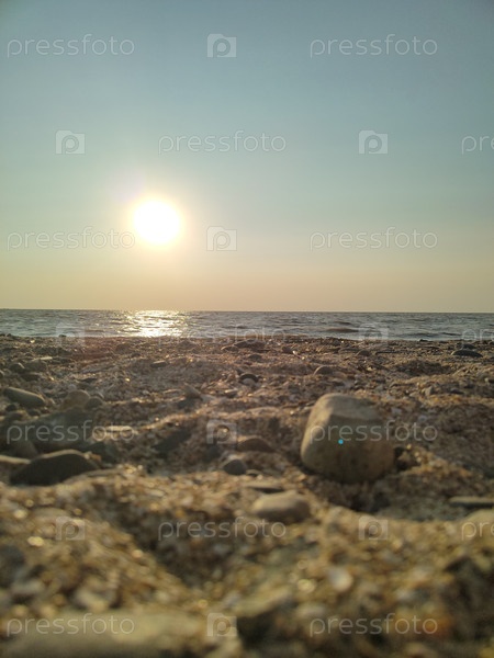 Закат на пляже с мягким песком и океаном, расслабляющий береговой фон, спокойный морской обои