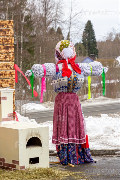 Широкая Масленица. Масленичное чучело на праздничной фотозоне готовится к сжиганию. Прощание с зимой и встреча весны