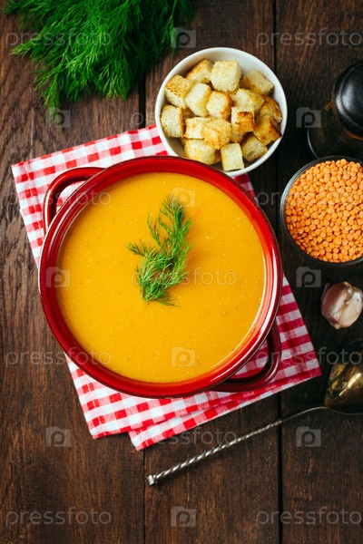 Тарелка чечевичного супа-пюре