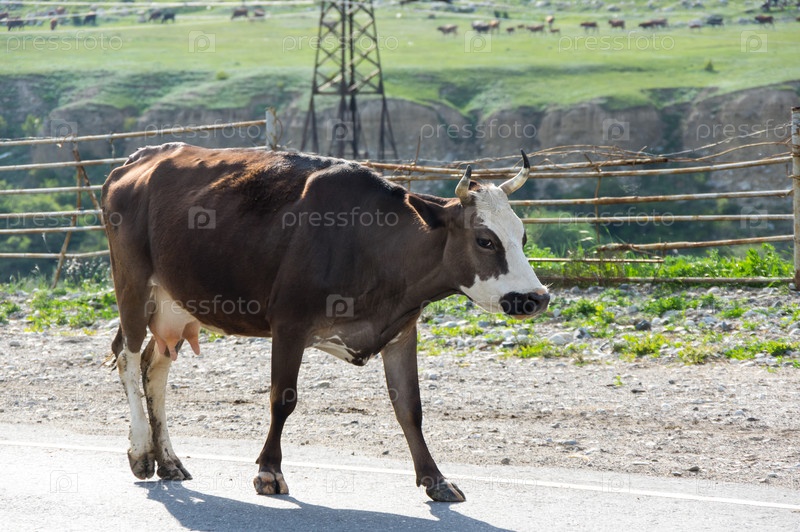 Корова в ущелье Баксан в Кавказских горах России