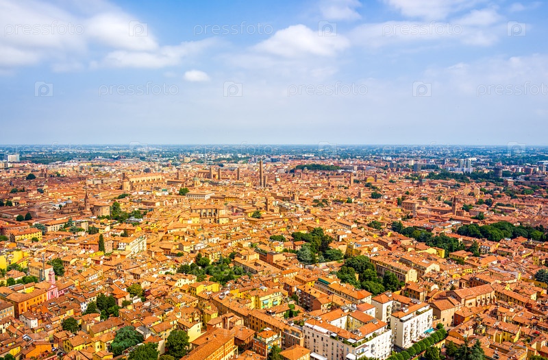 Болонья, Италия Исторический центр Панорама города в летний день Солнечная погода Вид с воздуха