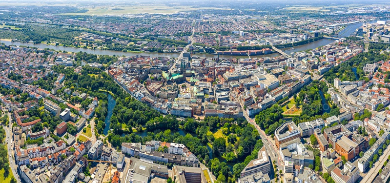 Вид из воздуха на исторический город Бремен, Германия
