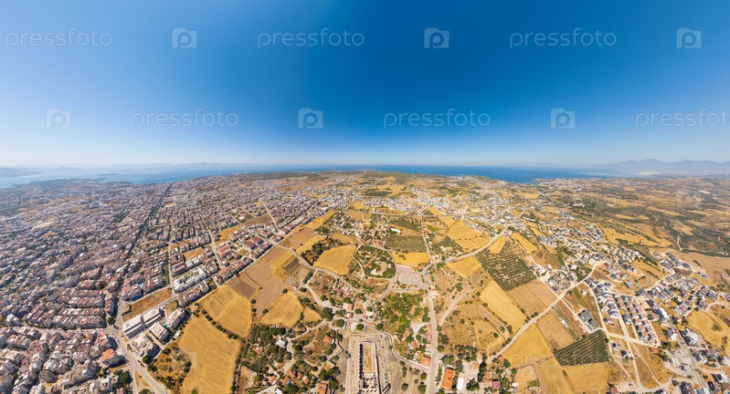 Панорама развития недвижимости, показывающая жилые районы, туристическую инфраструктуру с храмом Аполлона в качестве исторической достопримечательности