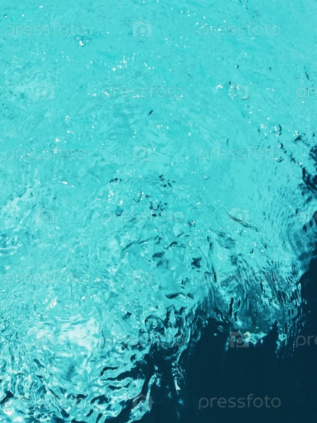 Фиолетовый цветок плавает на чистой бирюзовой воде бассейна с яркими отражениями солнца