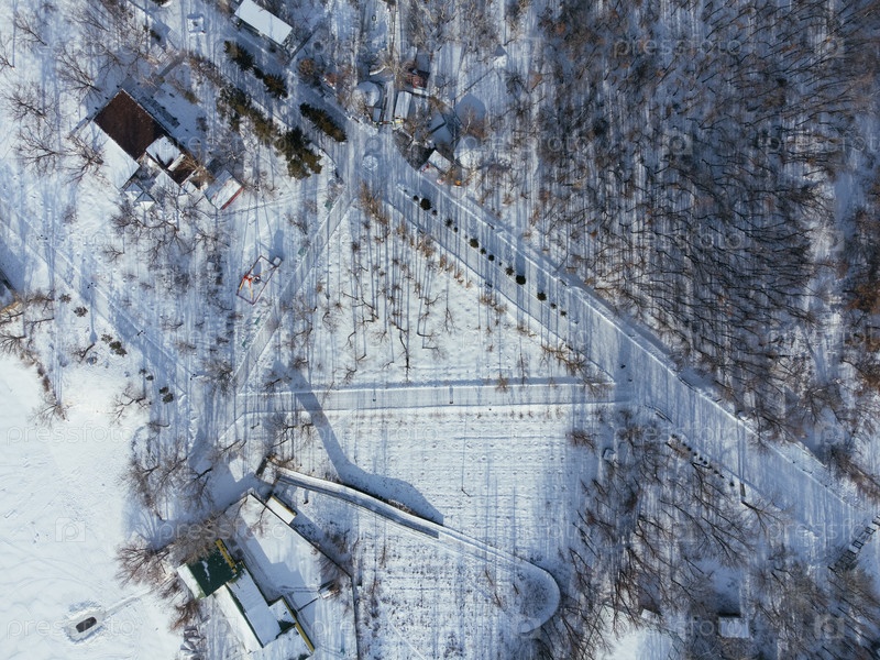 Вид с воздуха центра города Уральска, Центрального парка, Downtown, Казахстан