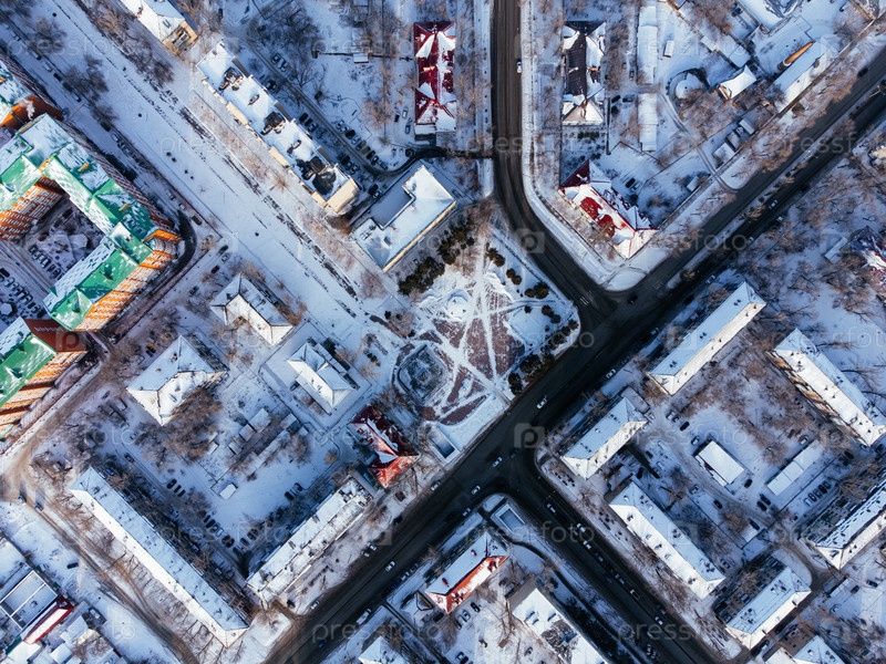 Вид с воздуха центра города Уральск, центр города, Казахстан