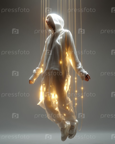 Иллюминированная фигура в движении Потрясающее видение современной уличной одежды Искусство и выражение культуры